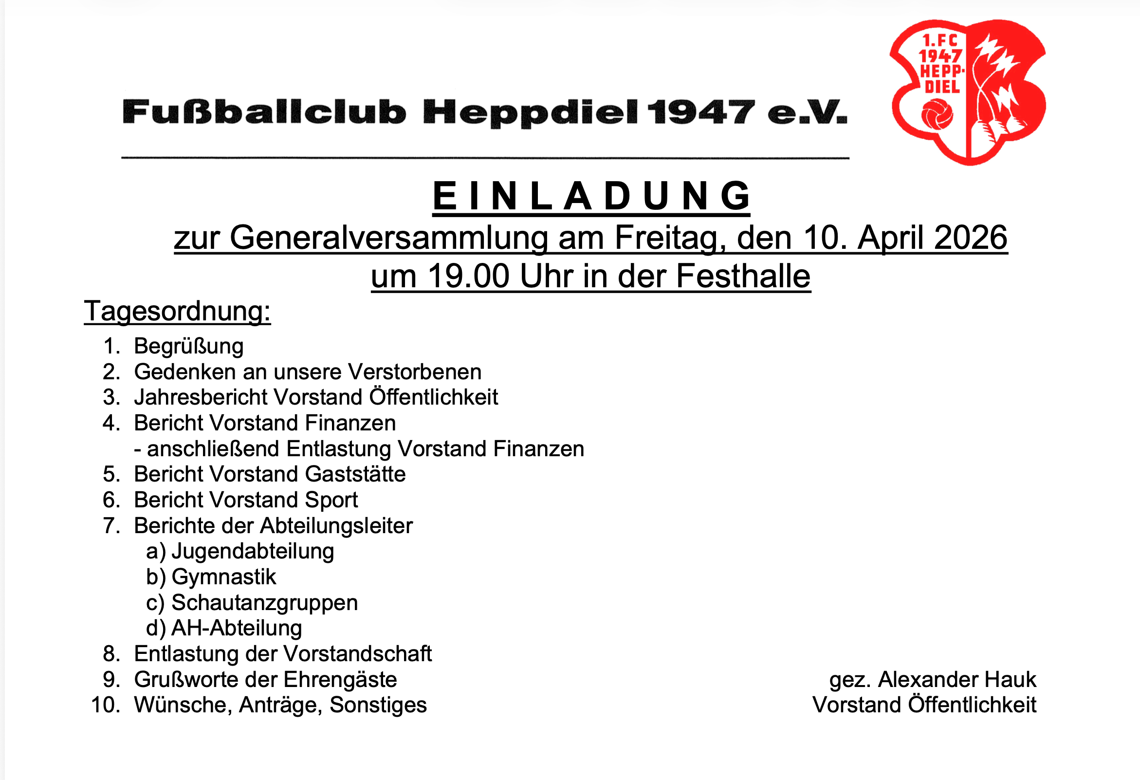 10. Apr 2026 Generalversammlung
